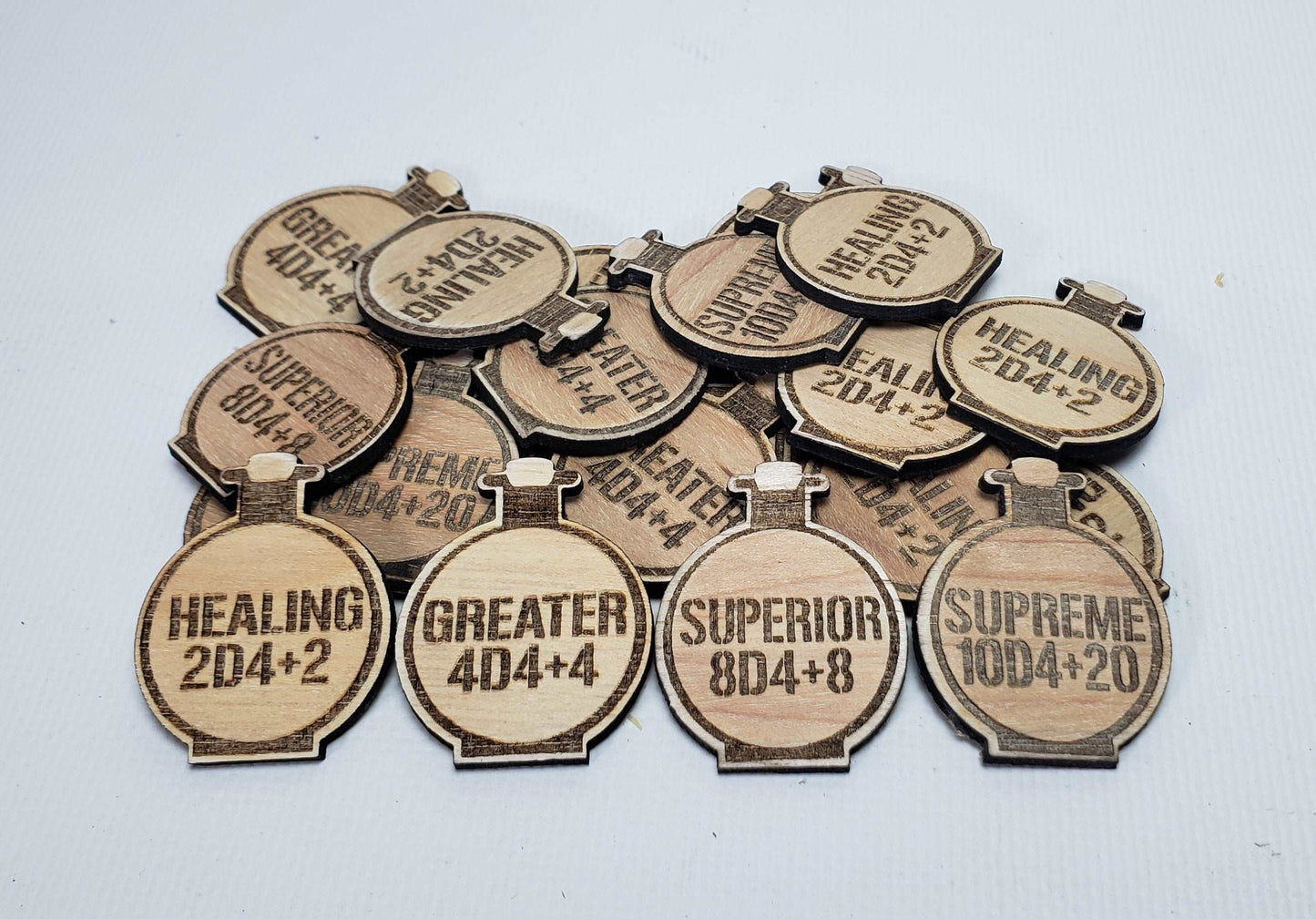 Our Potion Token set is made from layers 3mm plywood.